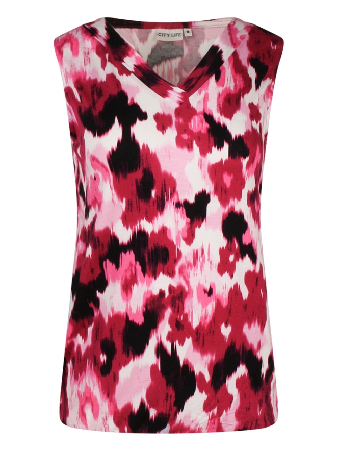 Dit dames singlet van Citylife uit de zomercollectie heeft een prachtig aquarelbloemdessin voor een frisse, vrolijke uitstraling. Het topje is gemaakt van een comfortabele viscose-elastaan mix, die soepel valt en ademend is, ideaal voor warme dagen. Met een V-hals en mouwloos ontwerp heeft het een luchtige, zomerse vibe, terwijl het elastische detail onderaan de band zorgt voor een perfecte pasvorm. Het aquarelbloemdessin voegt een artistieke flair toe, waardoor dit singlet zowel geschikt is voor een casual dagje uit als een zomerse avond.