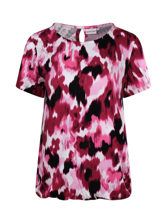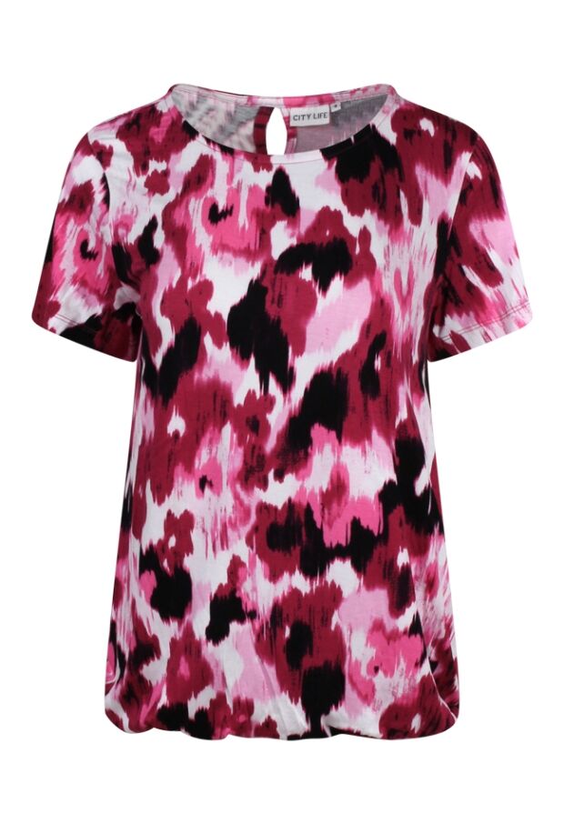 Dit dames T-shirt van Citylife uit de zomercollectie is uitgevoerd in een fris aquarelbloemdessin en combineert stijl met comfort. Gemaakt van een soepele viscose-elastaan mix, voelt het zacht aan op de huid en biedt het volop bewegingsvrijheid op warme dagen. Het T-shirt heeft een ronde hals, korte mouwen en een speels keyhole-detail aan de achterkant voor een verfijnde touch. De elastiek onderaan zorgt voor een flatterende pasvorm. Dankzij het artistieke dessin en de luchtige afwerking is dit T-shirt perfect voor zowel alledaagse als zomerse gelegenheden.