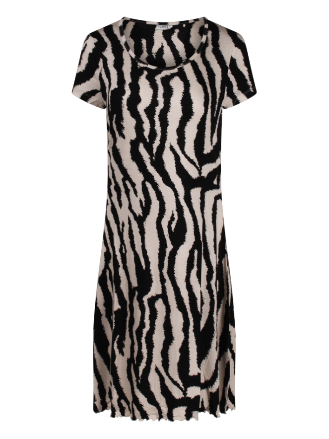 Deze damesjurk met grafische print is gemaakt van een soepel vallende stof die licht en luchtig aanvoelt, perfect voor warme zomerdagen. De moderne print geeft de jurk een trendy uitstraling, terwijl de comfortabele pasvorm zorgt voor ultiem draagplezier. Ideaal voor een dagje uit, een vakantie of een casual zomerfeest!