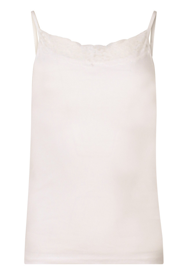 De best basics die niet mogen ontbreken in je garderobe vind je bij de Jensen Family Shop! Deze singlet met spaghettibandjes en mooie kant rand is verkrijgbaar in maar liefst 6 kleurtjes. Basic musthaves waarmee je alle kanten uit kunt!