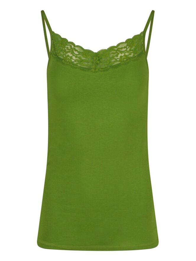 De best basics die niet mogen ontbreken in je garderobe vind je bij de Jensen Family Shop! Deze singlet met spaghettibandjes en mooie kant rand is verkrijgbaar in maar liefst 6 kleurtjes. Basic musthaves waarmee je alle kanten uit kunt!