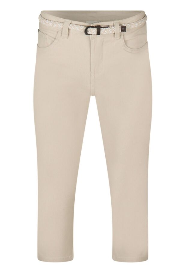 Deze driekwart broek van Citylife is de perfecte combinatie van comfort en stijl voor zomerse dagen. Gemaakt van een zachte katoenmix met stretch, biedt de broek een fijne pasvorm en optimale bewegingsvrijheid. De effen twill stof wordt speels afgewerkt met een gevlochten ceintuurtje voor een subtiel accent. Dankzij de 5-pocket styling, regular waist en praktische lengte is deze broek niet alleen modieus, maar ook ideaal voor op de fiets of een actieve dag buiten.