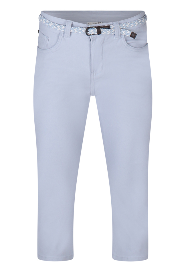 Deze driekwart broek van Citylife is de perfecte combinatie van comfort en stijl voor zomerse dagen. Gemaakt van een zachte katoenmix met stretch, biedt de broek een fijne pasvorm en optimale bewegingsvrijheid. De effen twill stof wordt speels afgewerkt met een gevlochten ceintuurtje voor een subtiel accent. Dankzij de 5-pocket styling, regular waist en praktische lengte is deze broek niet alleen modieus, maar ook ideaal voor op de fiets of een actieve dag buiten.