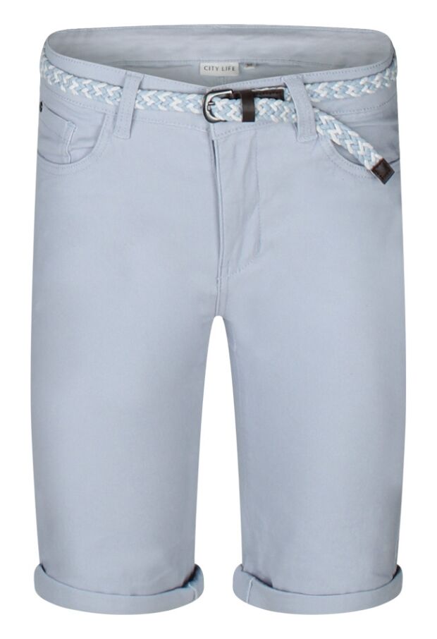 Deze korte broek van Citylife is een veelzijdige en comfortabele must-have voor de zomer. Vervaardigd uit een zachte katoenmix met stretch, zorgt de short voor een fijne pasvorm en veel bewegingsvrijheid. De effen twill stof krijgt een stijlvolle touch door het gevlochten ceintuurtje, terwijl de 5-pocket styling en regular waist zorgen voor een tijdloze look. Ideaal voor warme dagen en perfect te combineren met jouw favoriete zomertops.