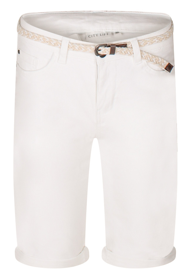 Deze korte broek van Citylife is een veelzijdige en comfortabele must-have voor de zomer. Vervaardigd uit een zachte katoenmix met stretch, zorgt de short voor een fijne pasvorm en veel bewegingsvrijheid. De effen twill stof krijgt een stijlvolle touch door het gevlochten ceintuurtje, terwijl de 5-pocket styling en regular waist zorgen voor een tijdloze look. Ideaal voor warme dagen en perfect te combineren met jouw favoriete zomertops.