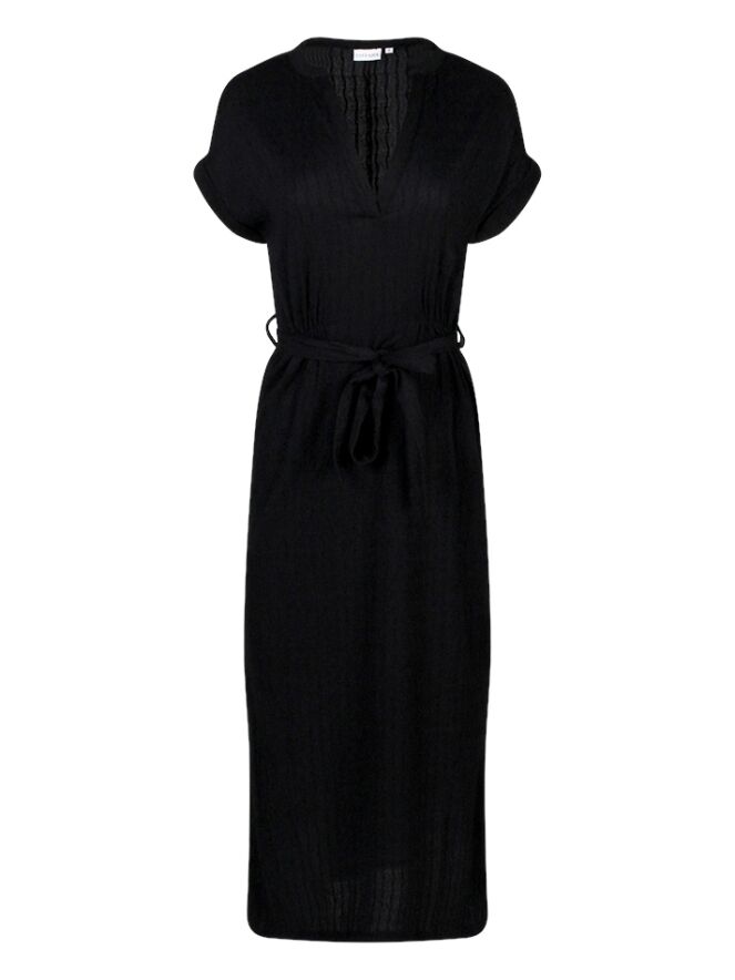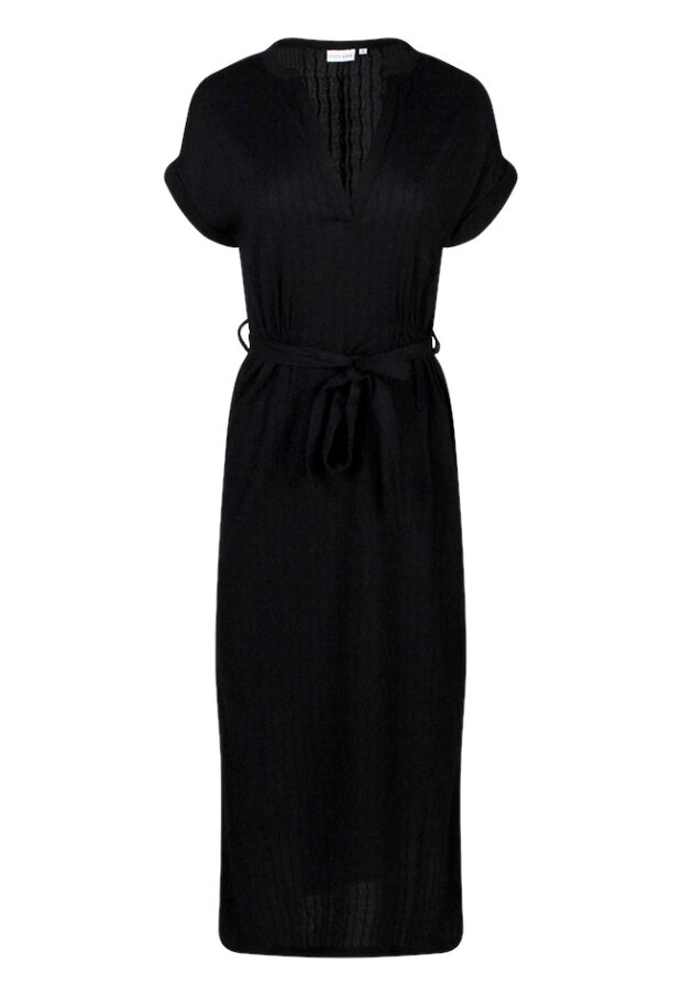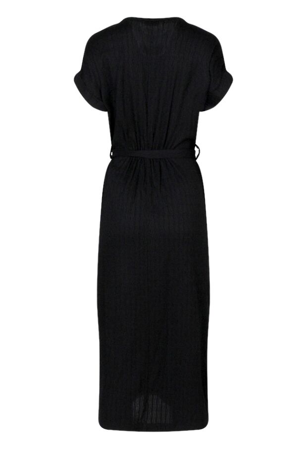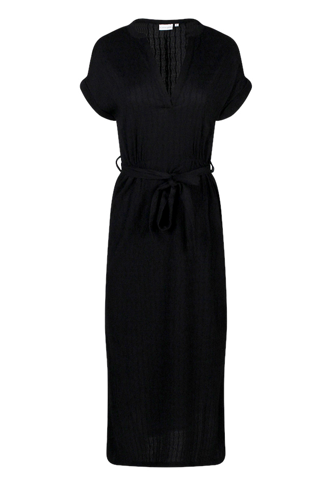 Deze maxi jurk van Citylife uit de zomercollectie is een stijlvolle must-have voor warme dagen. Gemaakt van een comfortabele effen structuurstof met een vleugje stretch, biedt deze jurk een perfecte pasvorm dankzij de elastische taille en bijpassende ceintuur. De V-hals en korte mouwen zorgen voor een vrouwelijke uitstraling, terwijl de speelse splitten aan de zijkant extra bewegingsvrijheid en een zomerse touch geven. Een ideale jurk voor zowel casual als geklede momenten, eenvoudig te combineren met sandalen of een denim jasje.