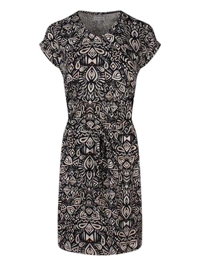 Deze damesjurk is gemaakt van een soepel vallende stof die heerlijk comfortabel draagt. Dankzij het ceintuur in de taille kun je de jurk mooi tailleren.