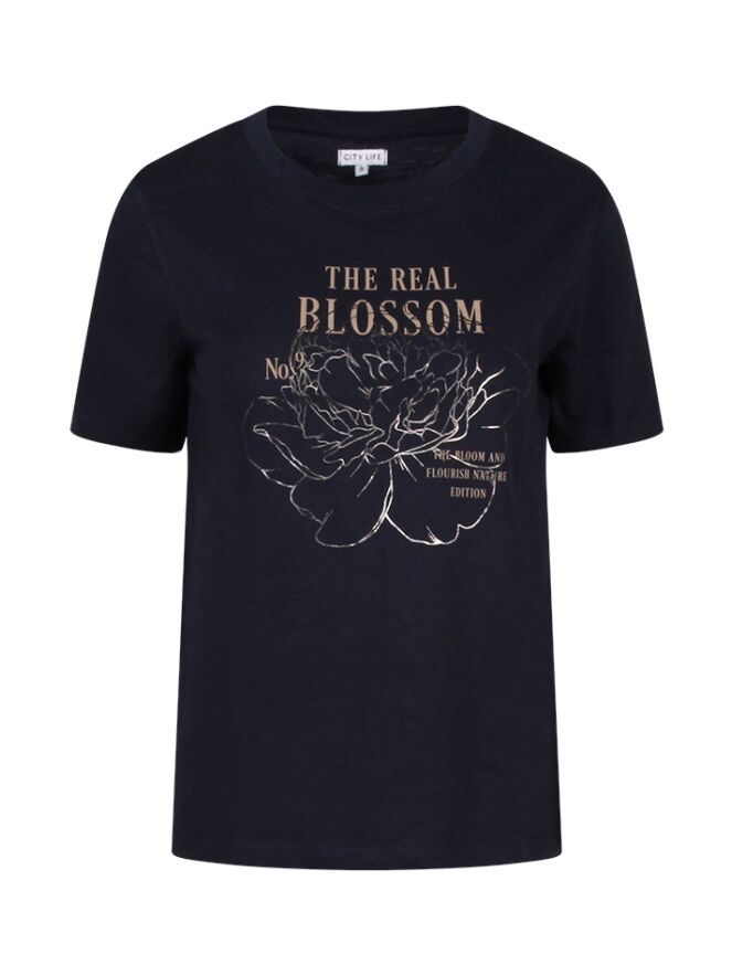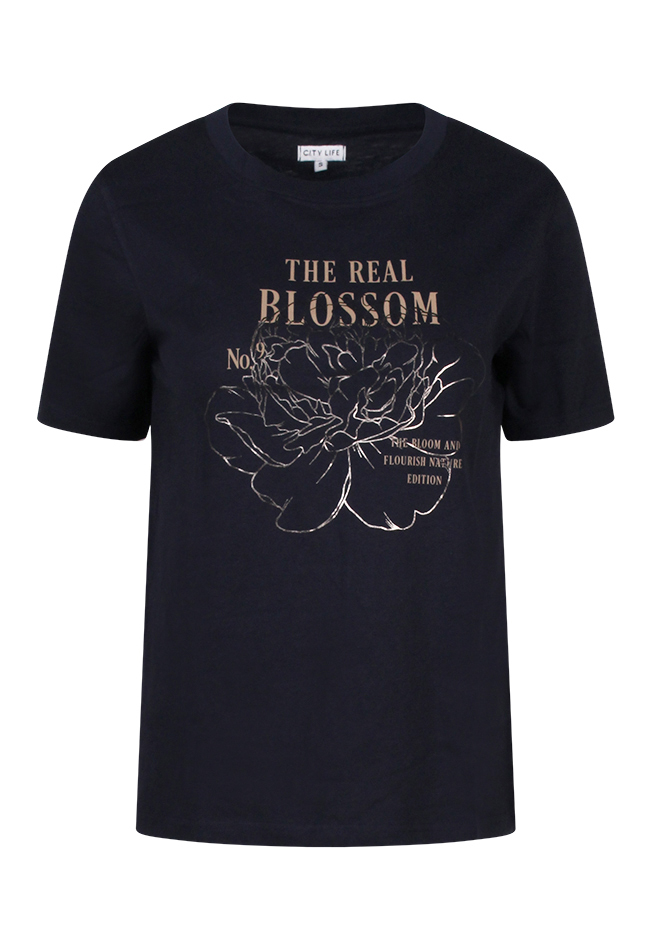Geef je zomeroutfit een frisse en vrouwelijke twist met dit katoenen T-shirt van Citylife. Het shirt heeft een ronde hals en korte mouwen, en is voorzien van een speelse borstprint met een combinatie van tekst en een glanzende folieprint bloem op het voorpand. De comfortabele pasvorm en zachte kwaliteit maken het een ideaal item voor dagelijks gebruik. Draag ?m casual op een jeans of combineer met een rok voor een meer geklede look.