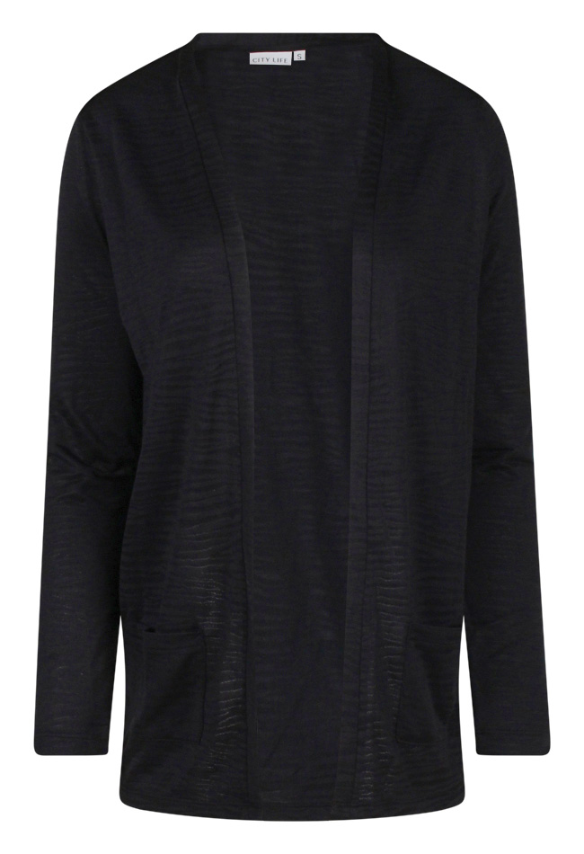Dit zomerse overslag vestje hebben we in het ecru en zwart. Je draagt het makkelijk over een hemdje of T-shirtje. Dit dunne vestje is licht doorschijnend door het zebra motiefje in de stof. Voor iedere casual look, makkelijk op de fiets, even snel een boodschapje doen of neem hem mee naar dat leuke uitje dat gepland stond!!