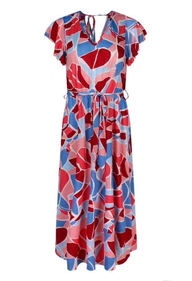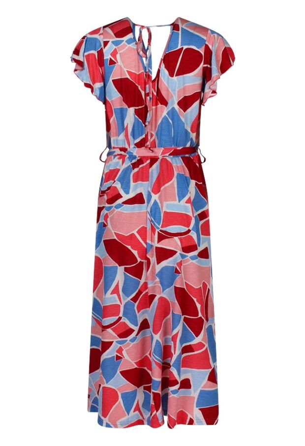 Deze damesjurk is uitgevoerd met een stijlvolle grafische print en heeft een subtiele ribbelstructuur in de stof, wat zorgt voor een speels effect. De jurk heeft een ceintuur in de taille, waarmee je een mooie vorm creëert.