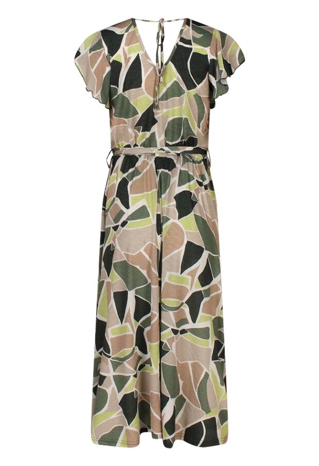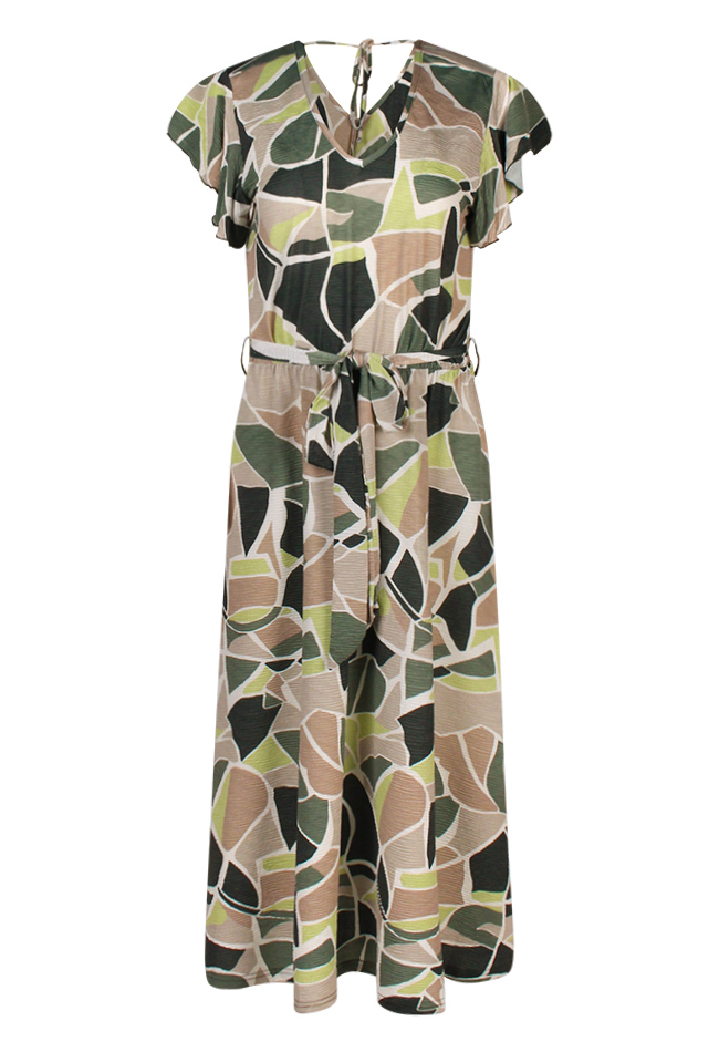 Deze damesjurk is uitgevoerd met een stijlvolle grafische print en heeft een subtiele ribbelstructuur in de stof, wat zorgt voor een speels effect. De jurk heeft een ceintuur in de taille, waarmee je een mooie vorm creëert.