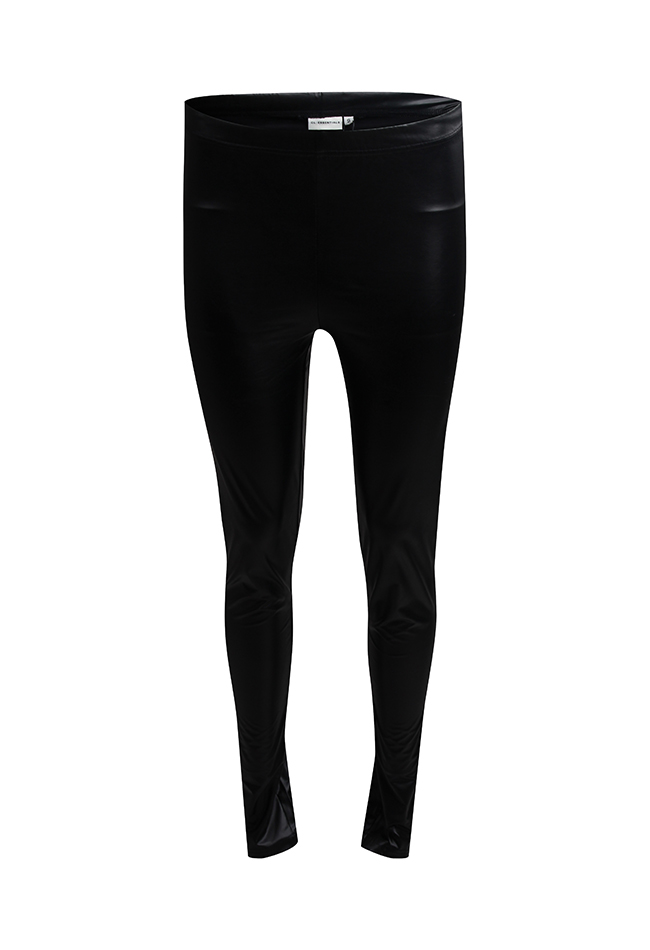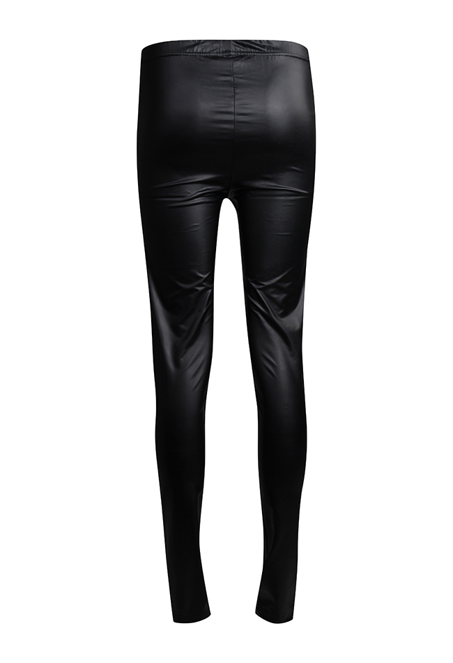 Coated legging van CL Essentials. De legging heeft een PU look en feel. Er zit elastiek in de taille, recht model. Materiaal: 95% polyester, 5% elasthan. Wassen op 30 graden, niet bleken, niet stomen, niet in de droger, niet strijken.