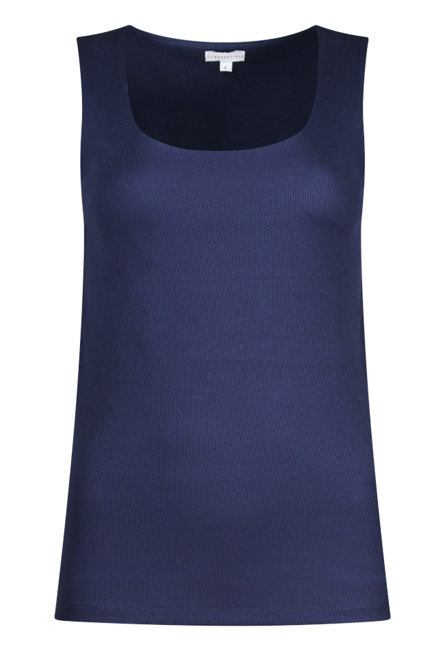Singlet van CL Essentials. Dit hemd heeft een ronde hals en is het bovenste deel zowel voor als achter dubbel pandig. Gemaakt van een fijne rib stof.