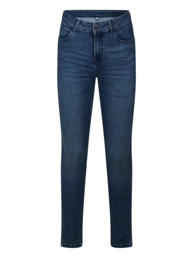 Five pocket skinny stretch jeans in twee wassingen. Deze jeans heeft een aansluitende pasvorm en draagt super lekker door de stretch die is toegevoegd. Deze jeans is gemaakt van gerecyclede petflessen.