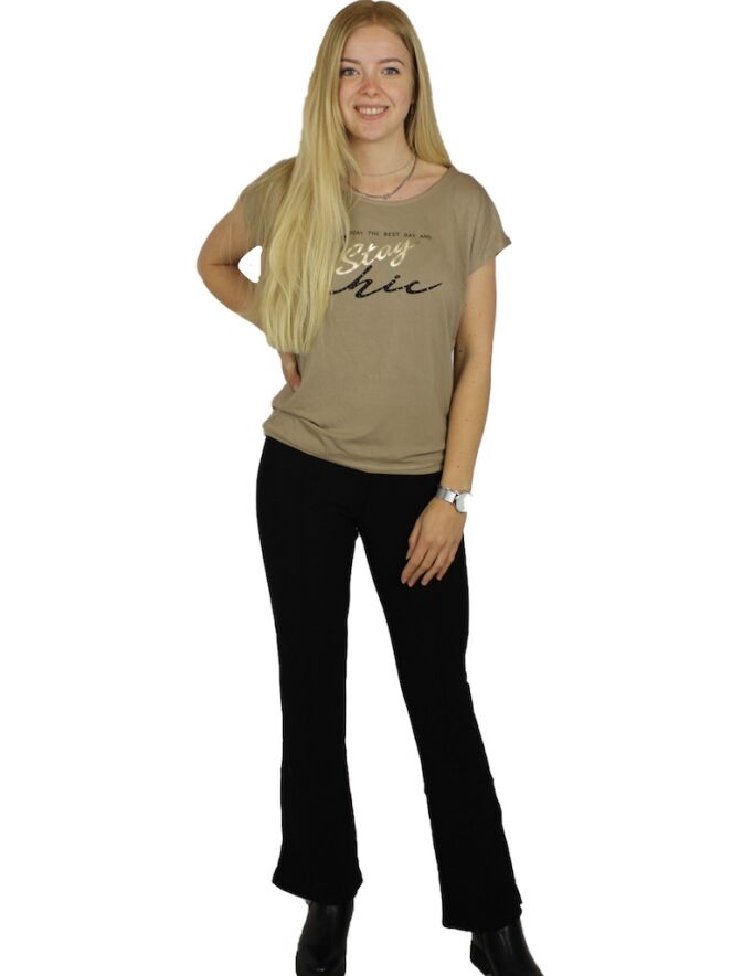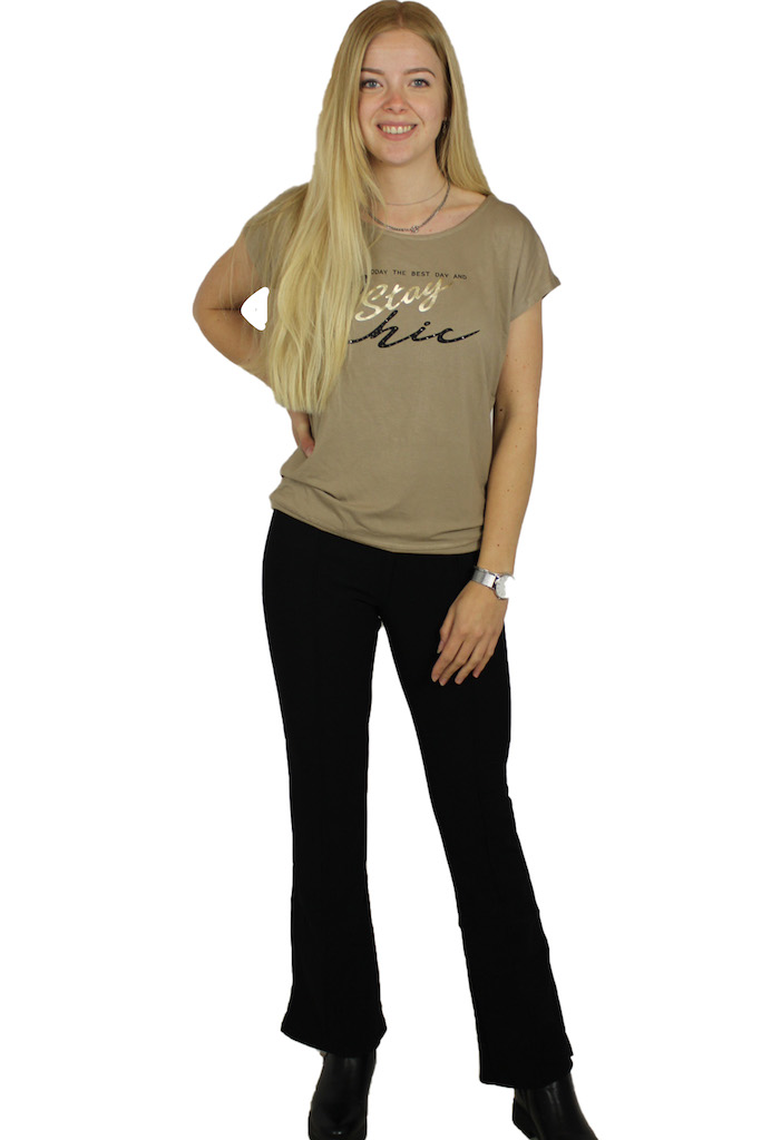 Rib pantalon van CL Essentials. De broek heeft een elastieken taille en is van rekbare ribstof. De broek heeft een flair pijp met een split. Valt op maat. Materiaal: 95% polyester, 5% elasthan. Wassen op 30 graden, niet bleken, niet in de droger, kan gestreken worden.