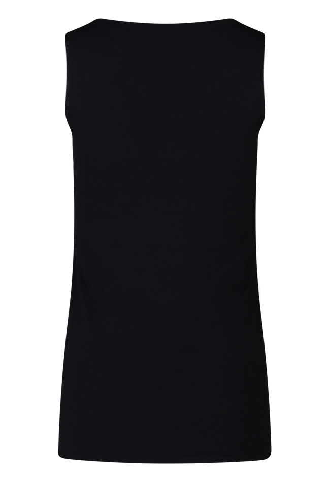 Basis hemdje van gladde stof met brede bandjes en de bovenkant heeft een dubbele stof.
