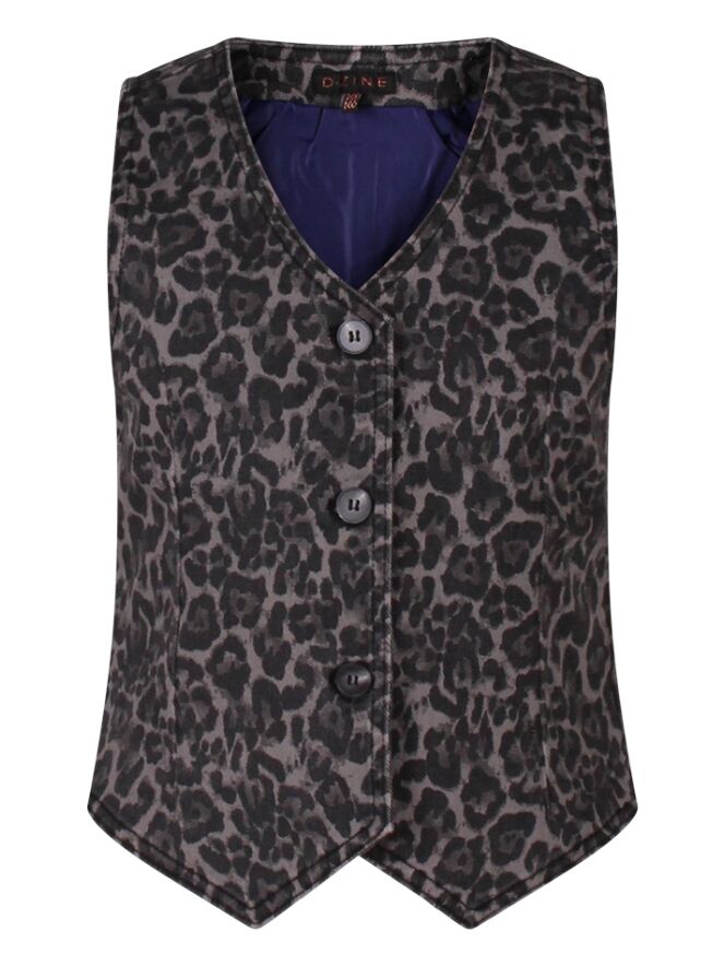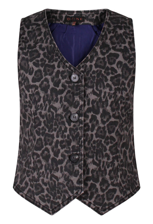 Dit leuke giletje met panterprintje is super leuk te combineren met een effen shirtje of T-shirtje eronder op een mooie jeans. Wist je dat ditzelfde giletje er ook is in damesmaten? Lizzy Lou W10099. Twinning is winning!