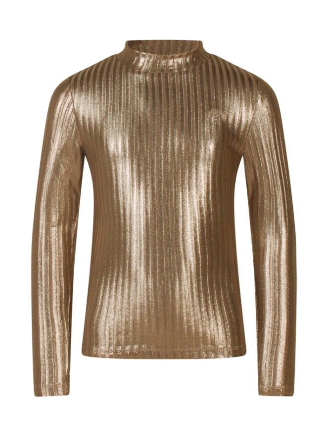 Trendy meisjes t-shirt met een turtleneck. Gemaakt van comfortabele polyester/elastan ribstof en voorzien van een metallic coating voor een feestelijke uitstraling. Het aangesloten model is perfect voor zowel alledaagse looks als speciale gelegenheden.