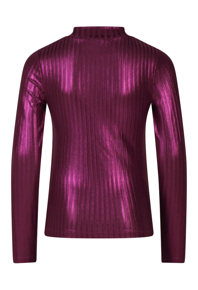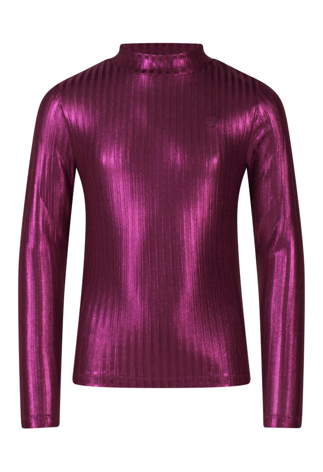 Trendy meisjes t-shirt met een turtleneck. Gemaakt van comfortabele polyester/elastan ribstof en voorzien van een metallic coating voor een feestelijke uitstraling. Het aangesloten model is perfect voor zowel alledaagse looks als speciale gelegenheden.
