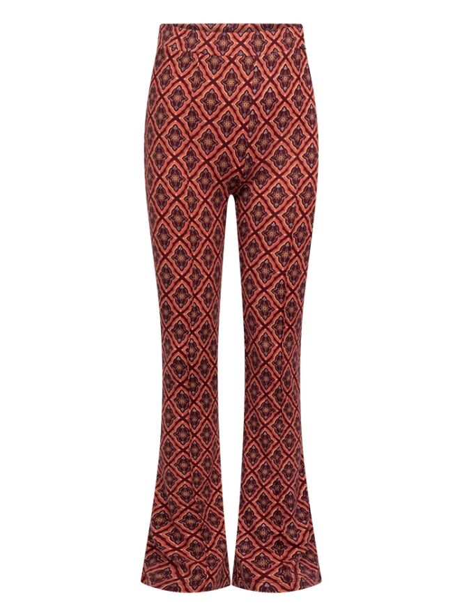 Trendy meisjes broek van D-zine, uitgevoerd in een comfortabele zachte jersey met grafische print. De broek heeft een aansluitende pasvorm aan de bovenkant en flared pijpen voor een modieuze look. Dankzij de elastische tailleband zit de broek heerlijk comfortabel. Leuk detail: er is ook een bijpassende top verkrijgbaar om de outfit compleet te maken.