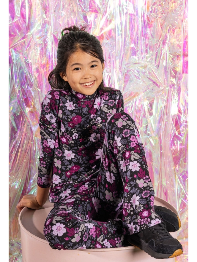 Trendy meisjes top van D-zine, uitgevoerd in een comfortabele zachte jersey met bloemenprint. Het model heeft een turtleneck en lange mouwen en heeft een aansluitende fit. Leuk detail: er is ook een bijpassende broek verkrijgbaar om de look compleet te maken.