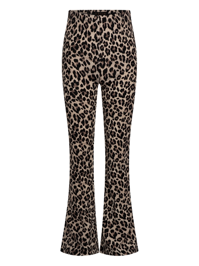 Trendy meisjes flair broek van D-zine, uitgevoerd in een comfortabele polyester/elastaan ribkwaliteit. De ene broek heeft een panter print, de andere broek een zebra print. De broek heeft een aansluitende pasvorm aan de bovenkant en loopt wijd uit in een flairmodel. Dankzij de elastische tailleband sluit de broek mooi aan en draagt hij extra comfortabel. De broek is te combineren met een bijpassende top in dezelfde print.
