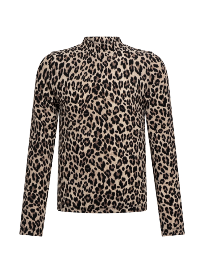 Trendy meisjes top van D-zine, uitgevoerd in een comfortabele polyester/elastaan ribkwaliteit met een opvallende all-over print. Verkrijgbaar in zowel panterprint als zebraprint. De top heeft een turtleneck en lange mouwen en is afgewerkt in een aansluitende fit. Perfect te combineren met de bijpassende flair broek in dezelfde print voor een complete set.