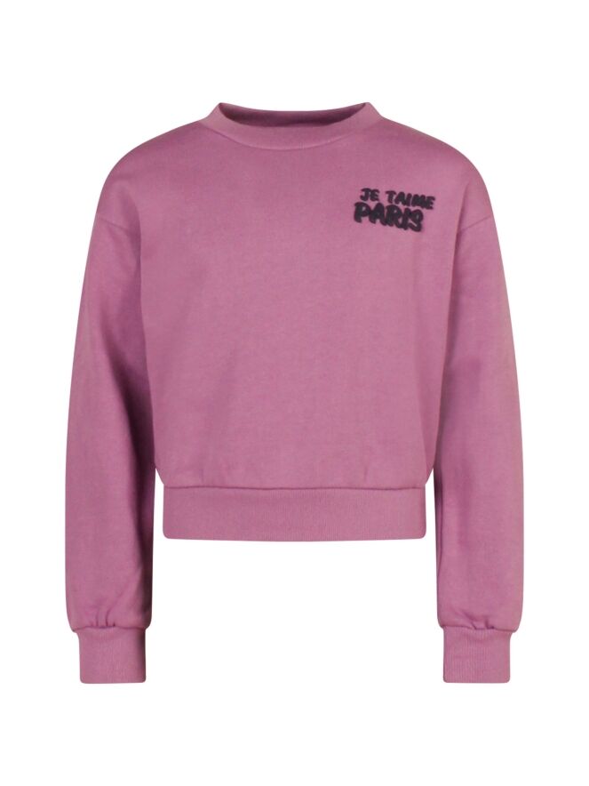 Je taime Paris! Deze gave sweater in frisse kleur heeft een kleine tekstprint voorop en een grote achterop. Leuk in combinatie met een vrolijk rokje maar doet het ook erg leuk op een gewone spijkerbroek! Hip en trendy en lekker casual!