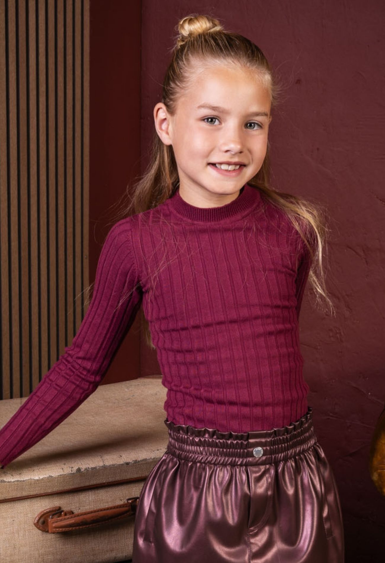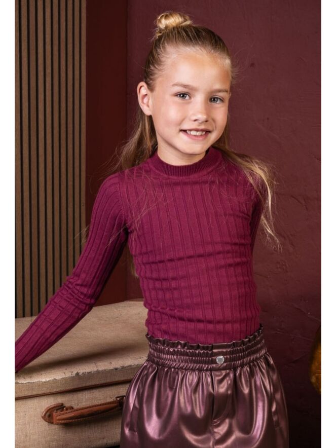 Deze aansluitende meisjes soft met brede ribbrei is heerlijk zacht en rekt mooi mee voor optimale bewegingsvrijheid. Perfect te combineren met een speels rokje en een gilet, of juist met een stoere jeans voor een casual look. Een veelzijdige basic waar je meisje elke dag blij van wordt!