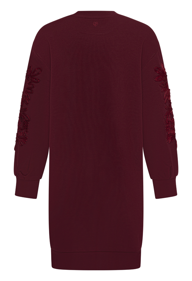 Heerlijke sweater jurk, super zacht en erg comfortabel. Legging eronder met een leuk laarsje en klaar is je outfit! Deze sweaterdress heeft een mooi sierlijk opgestikt lint op de mouw.