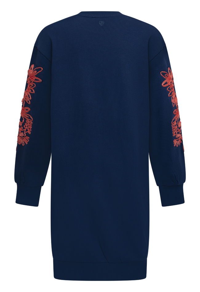 Heerlijke sweater jurk, super zacht en erg comfortabel. Legging eronder met een leuk laarsje en klaar is je outfit! Deze sweaterdress heeft een mooi sierlijk opgestikt lint op de mouw.