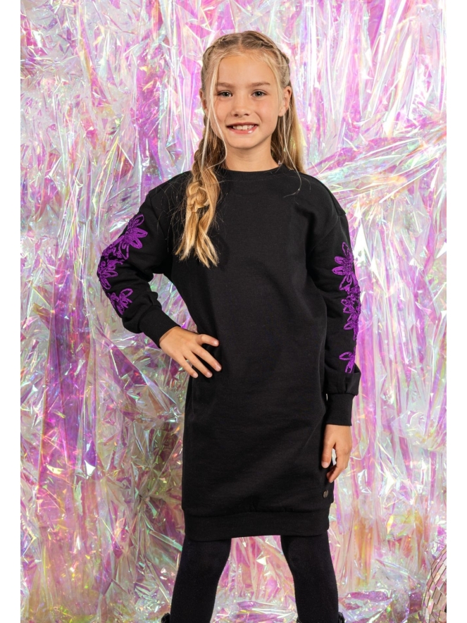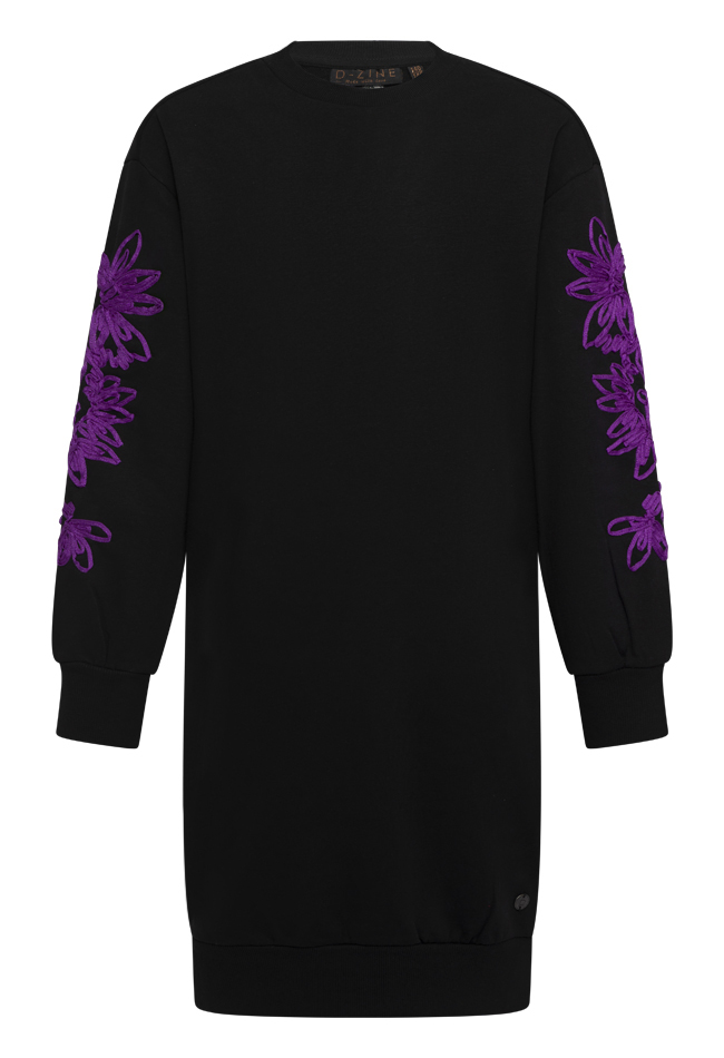 Heerlijke sweater jurk, super zacht en erg comfortabel. Legging eronder met een leuk laarsje en klaar is je outfit! Deze sweaterdress heeft een mooi sierlijk opgestikt lint op de mouw.