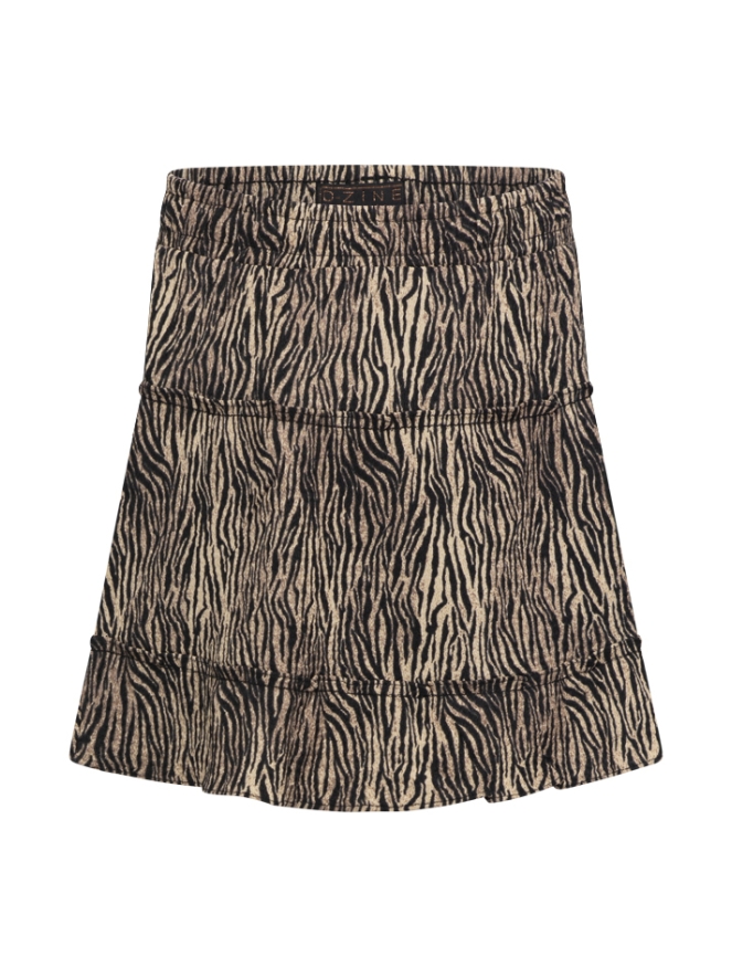 Trendy meisjes rok van D-zine, uitgevoerd in een soepele polyester/elastaan crêpe kwaliteit. De rok heeft een strokenmodel dat zorgt voor een zwierig effect en een elastische tailleband waardoor hij comfortabel draagt. Verkrijgbaar in drie varianten: panterprint, zebraprint en bloemenprint. Perfect te combineren met een eenvoudige top met gilet of met een bijpassend item uit de collectie.