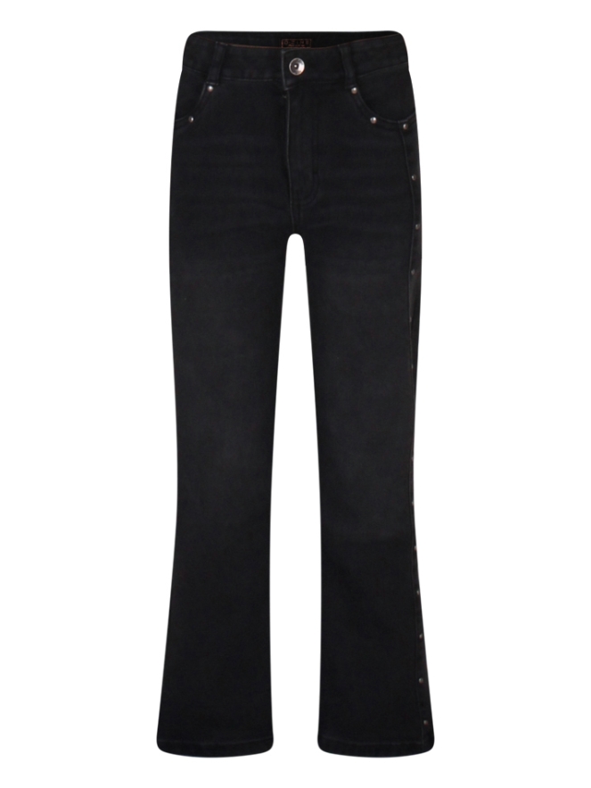 Stoere spijkerbroek voor meisjes van D-Zine. Deze spijkerbroek heeft superstretch, 4 pockets en stoere studs langs het been aan beide kanten! Dit rechte modelletje doet het goed onder een mooie sweater, trui of leuk shirt!