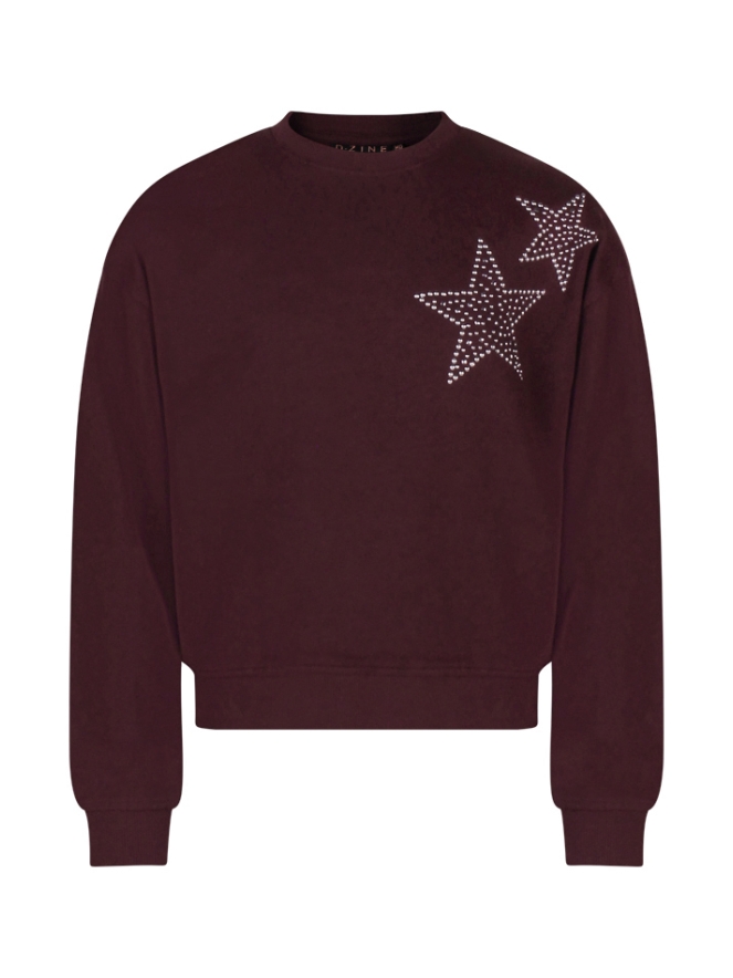 Leuke sweater met een klein vleugje western! Met voorop twee sterren van studs en achterop een speelse strook met franjes.