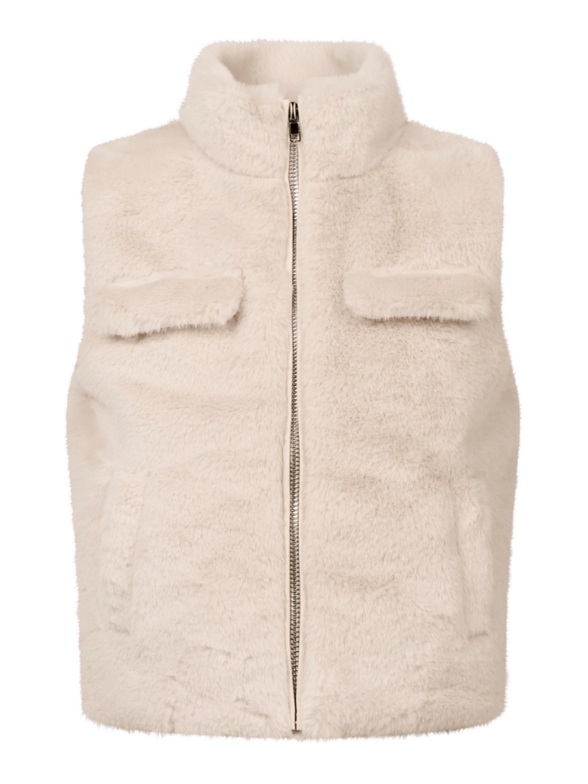 Superzachte meisjes fake fur bodywarmer van D-zine. Deze bodywarmer is uitgevoerd in heerlijk zachte imitatiebont met een gladde satijnen voering voor extra comfort. Het model heeft een opstaande kraag, is mouwloos en sluit met een rits aan de voorzijde. Voorzien van fake borst klepzakken voor een stoere uitstraling. Perfect te combineren met feestelijke en casual outfits.