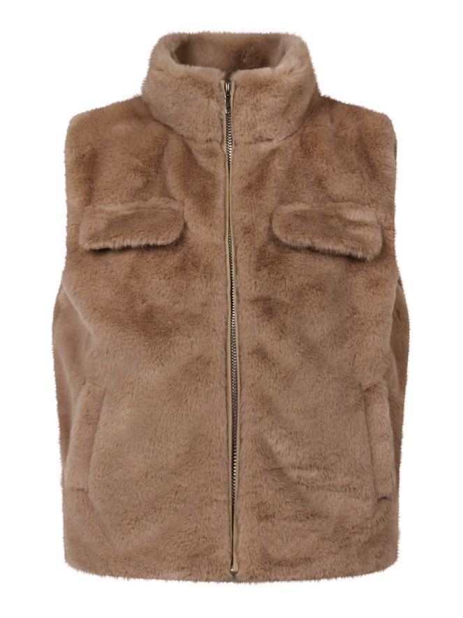 Superzachte meisjes fake fur bodywarmer van D-zine. Deze bodywarmer is uitgevoerd in heerlijk zachte imitatiebont met een gladde satijnen voering voor extra comfort. Het model heeft een opstaande kraag, is mouwloos en sluit met een rits aan de voorzijde. Voorzien van fake borst klepzakken voor een stoere uitstraling. Perfect te combineren met feestelijke en casual outfits.