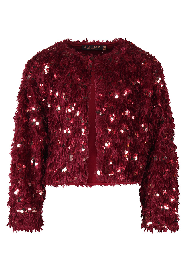 Dit feestelijke vestje voor meisjes is gemaakt van een zachte featherlook stof met glinsterende sequins voor een extra sprankelend effect. Het vestje heeft een openvallend model en voelt licht en comfortabel aan. Perfect om over een jurk of top te dragen voor een feestelijke gelegenheid.