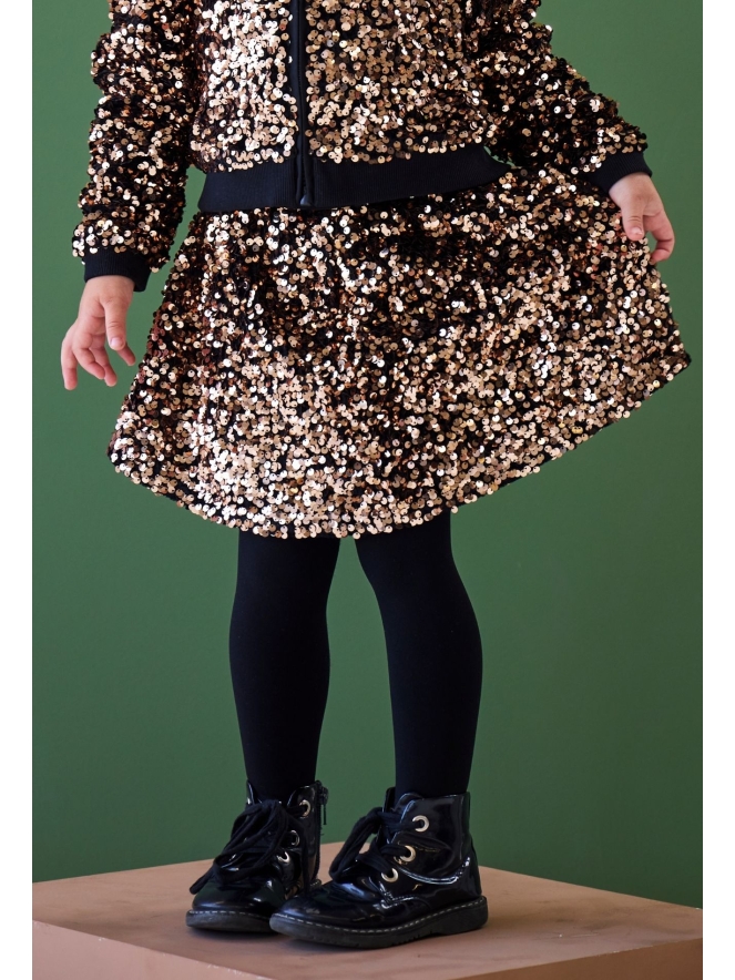 Dit rokje voor meisjes is gemaakt van zachte velvet met glinsterende pailletten voor een feestelijke uitstraling. De elastische tailleband zorgt voor een comfortabele pasvorm. Leuk te combineren met de bijpassende blazer of een sweater uit de party collectie voor een complete, sprankelende look.