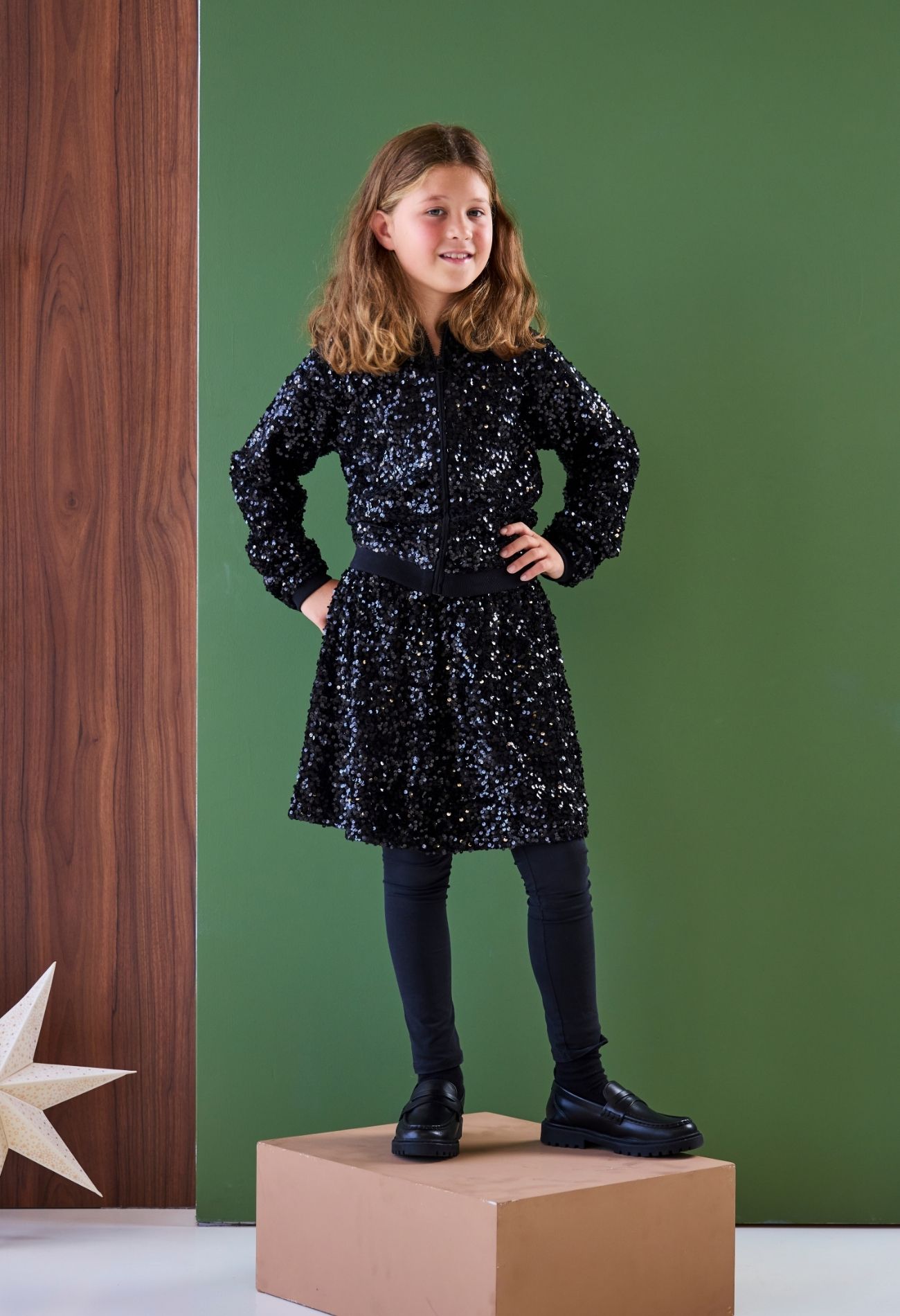 Dit rokje voor meisjes is gemaakt van zachte velvet met glinsterende pailletten voor een feestelijke uitstraling. De elastische tailleband zorgt voor een comfortabele pasvorm. Leuk te combineren met de bijpassende blazer of een sweater uit de party collectie voor een complete, sprankelende look.