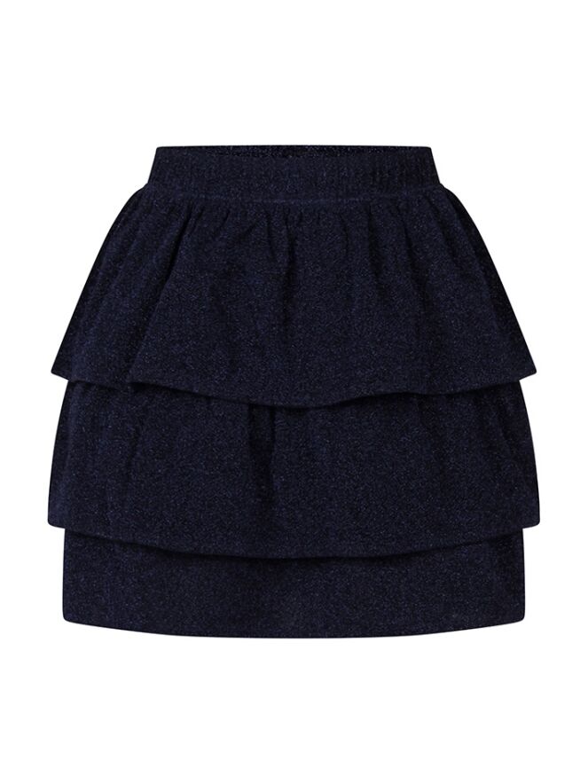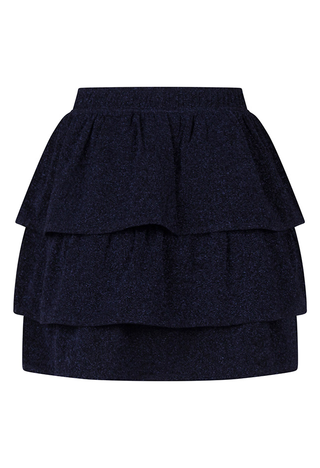 Dit strokenrokje voor meisjes is gemaakt van een glanzende metallic polyester met een vleugje elastaan, waardoor het soepel meebeweegt en mooi valt. De laagjes zorgen voor een speels effect. Leuk te combineren met een casual sweater of een feestelijke top.