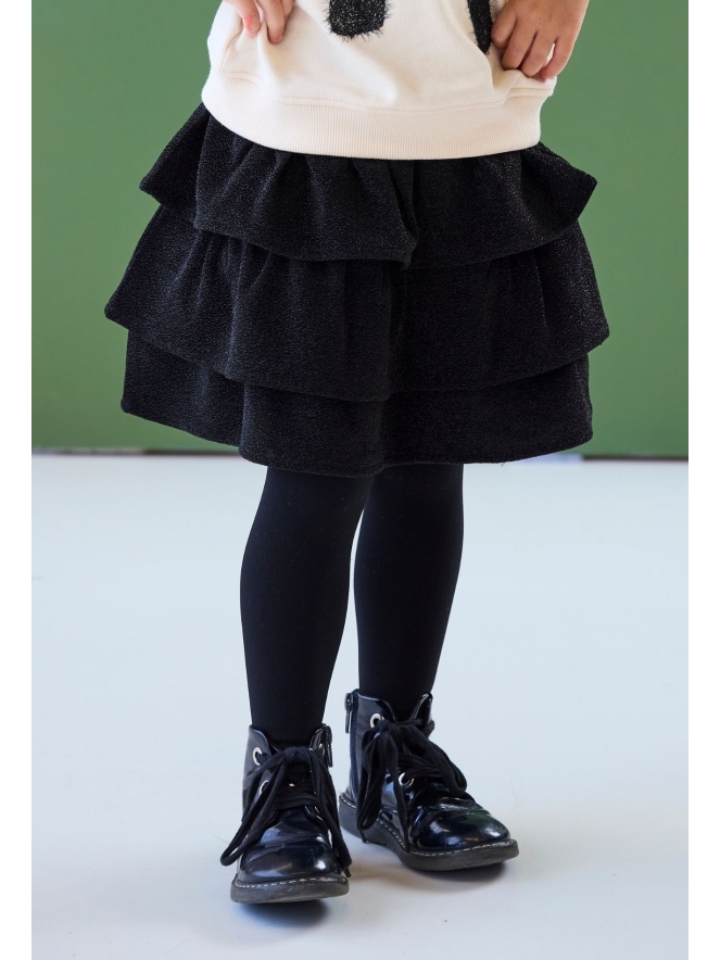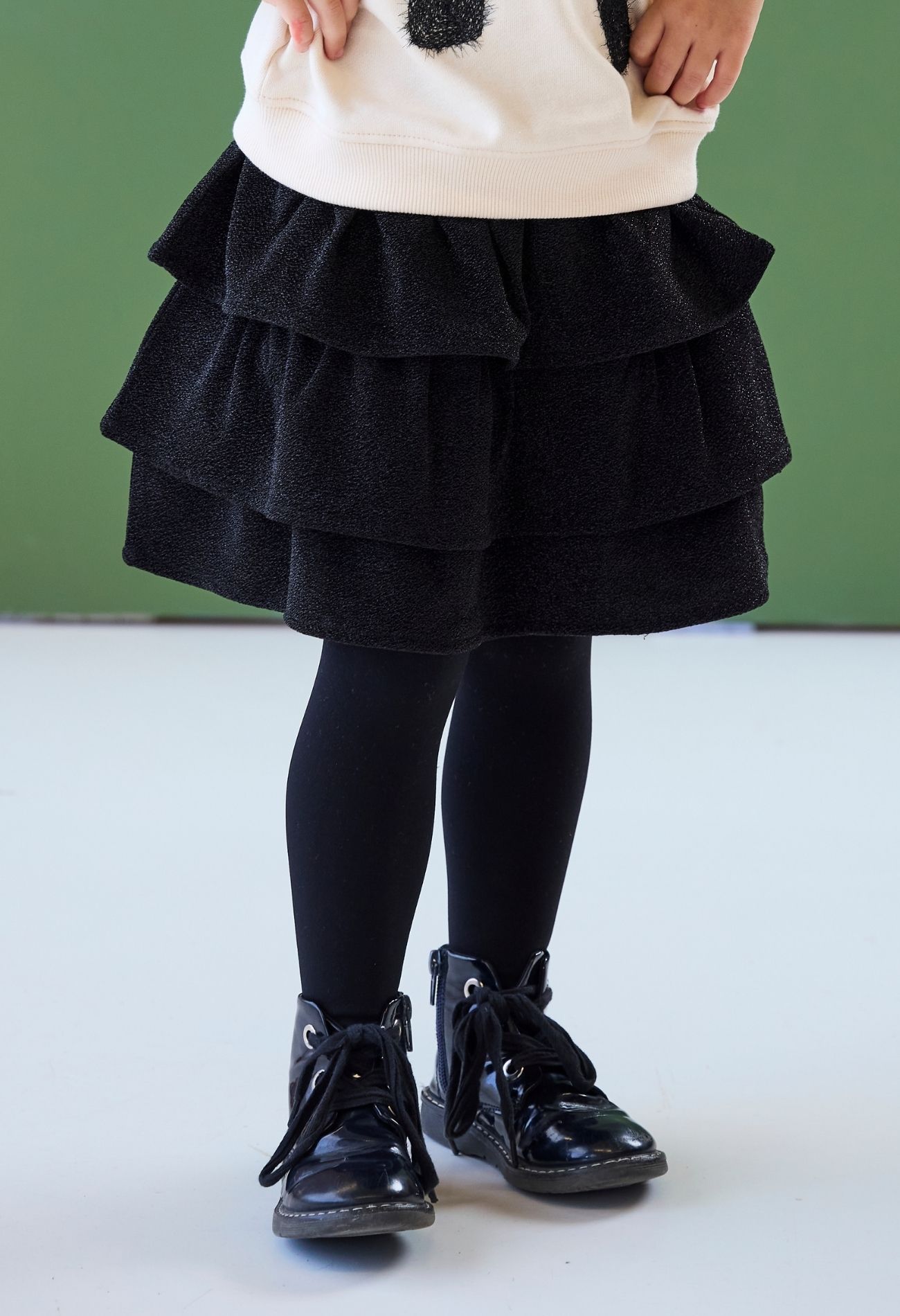 Dit strokenrokje voor meisjes is gemaakt van een glanzende metallic polyester met een vleugje elastaan, waardoor het soepel meebeweegt en mooi valt. De laagjes zorgen voor een speels effect. Leuk te combineren met een casual sweater of een feestelijke top.