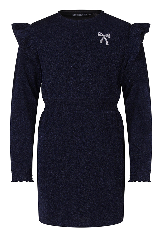 Deze meisjesjurk heeft een subtiele glans door de metallic draad in de stof. De ruches en het strikborduursel geven de jurk een lieve, feestelijke uitstraling. Dankzij het smockdetail sluit hij mooi aan en zit hij comfortabel. Perfect voor een speciale gelegenheid of een dag waarop ze extra wil stralen.