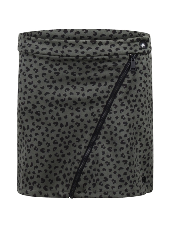 Suede rokje van D-zine. Het rokje heeft een rechte pasvorm met een scheve grove rits. Materiaal: 98% polyester, 2% elasthan. Wassen op 30 graden, niet bleken, niet in de droger, niet chemisch reinigen, koud strijken. Matching jasje: w60090