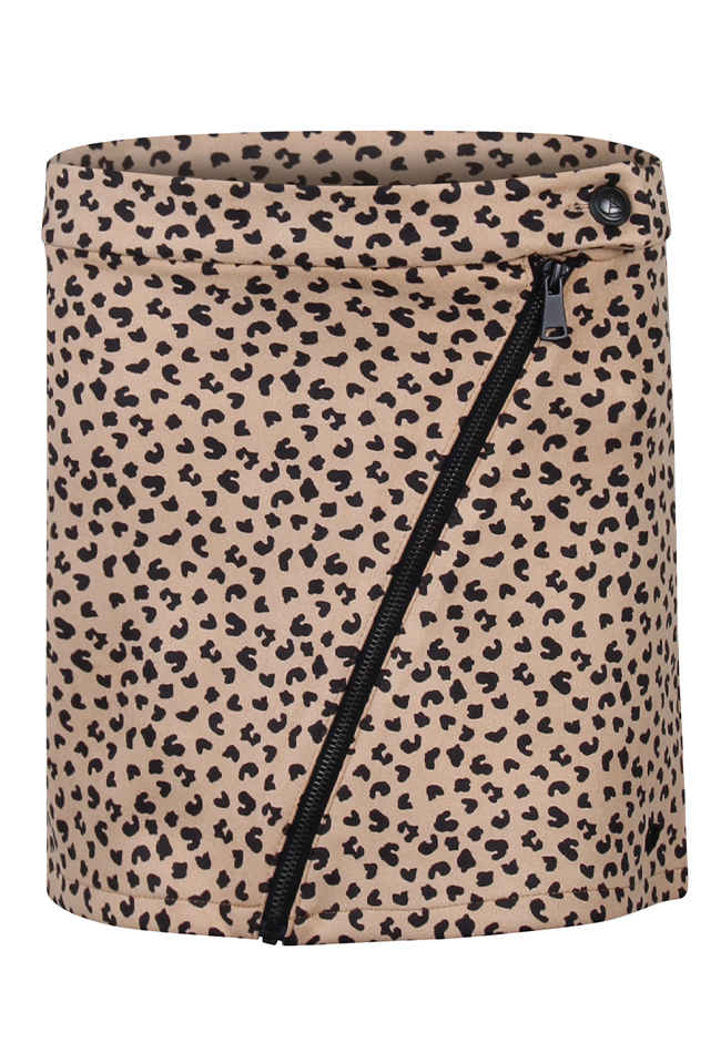 Suede rokje van D-zine. Het rokje heeft een rechte pasvorm met een scheve grove rits. Materiaal: 98% polyester, 2% elasthan. Wassen op 30 graden, niet bleken, niet in de droger, niet chemisch reinigen, koud strijken. Matching jasje: w60090