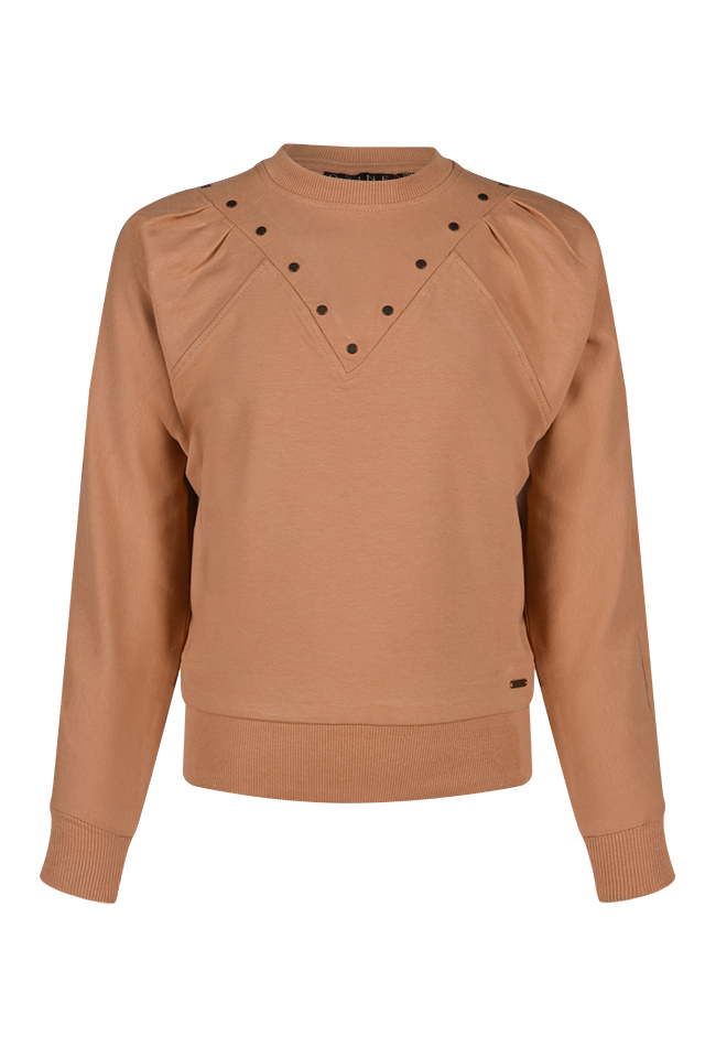 Sweater van D-zine. De trui heeft een v-pas met studs. Materiaal: 95% katoen, 5% lycra. Wassen op 30 graden, niet in de droger, kan gestreken worden, niet bleken.