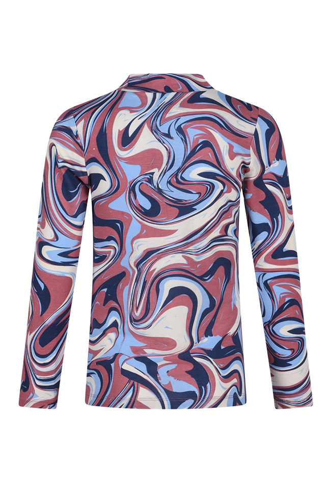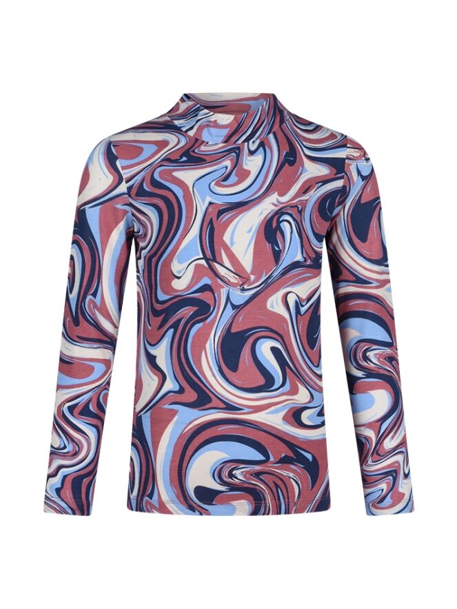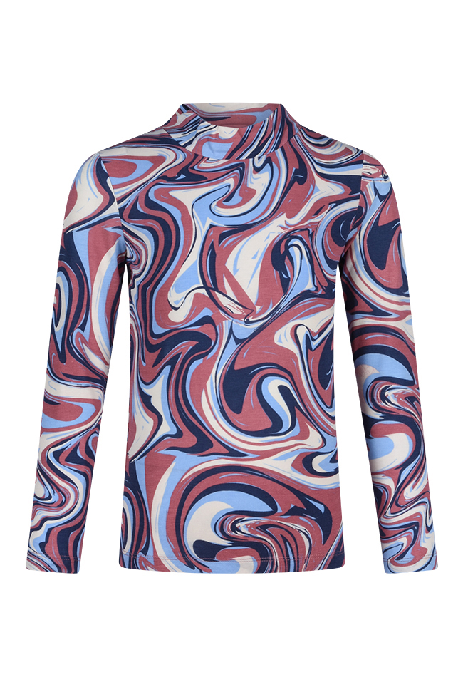 T-shirt met lange mouw van D-zine. Het t-shirt heeft een swirl design en een turtle nek. Materiaal: 95% viscose, 5% lycra. Wassen op 30 graden, niet in de droger, kan gestreken worden, niet bleken.