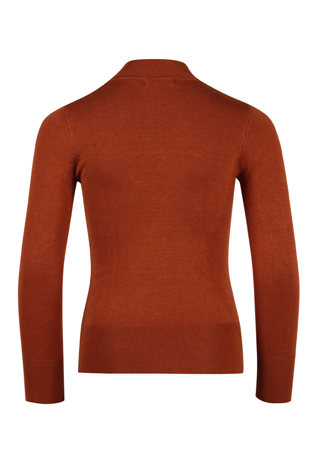Fijn brei pullover van D-zine. De top heeft een hoge hals en is fijn gebreid. Materiaal: 83% viscose, 17% nylon. Wassen op 30 graden, niet bleken, niet in de droger, kan gestreken worden.