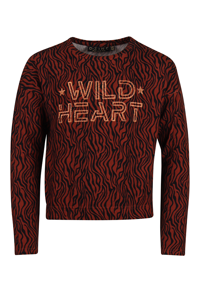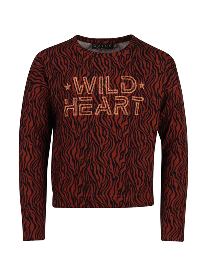 T-shirt met lange mouw van D-zine. Het shirt heeft een all over zebra print met een glitter tekst op de voorkant. Er zit elastiek in de onderkant waardoor het shirtje poft. Materiaal: 95% polyester, 5% elasthan. Wassen op 30 graden, niet bleken, niet in de droger, kan gestreken worden.