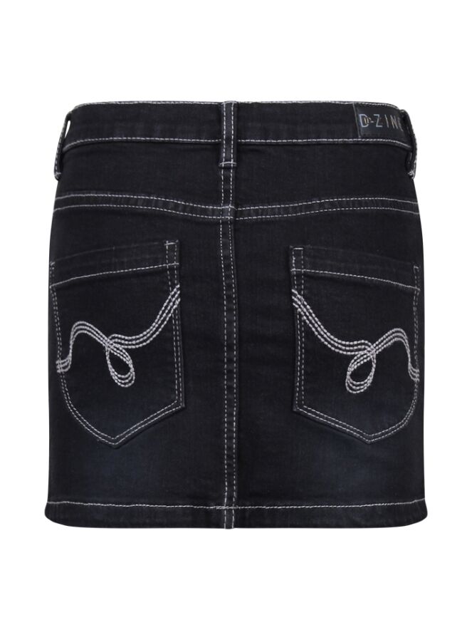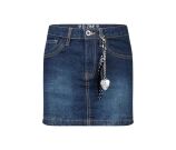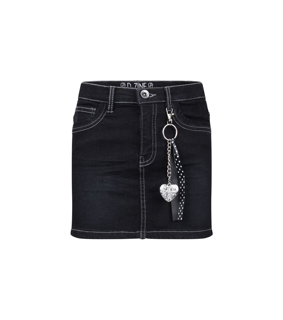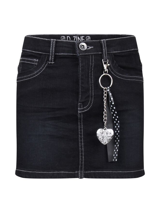 Rok met verstelbare tailleband door middel van knoop met elastiek. Sluiting met rits en knoop. Met een harten sleutelhanger.